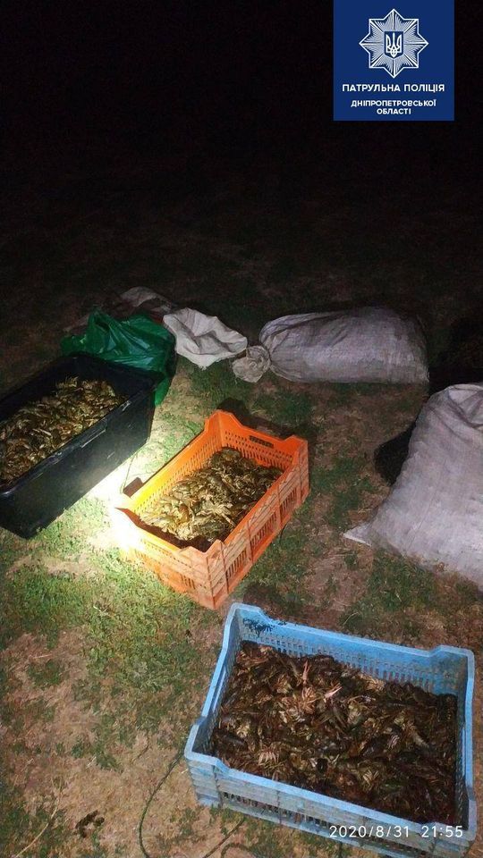 Човен із навісним двигуном, в якому знаходилося двоє чоловіків, співробітники роти з обслуговування водних об'єктів побачили неподалік села Вищетарасівка ввечері 31 серпня. Як виявилося, чоловіки ловили раків, попри заборону, яка наразі триває й закінчується тільки 30 вересня. У човні були знайдені мішки та ящики — здобич браконьєрів виявилася чималою.