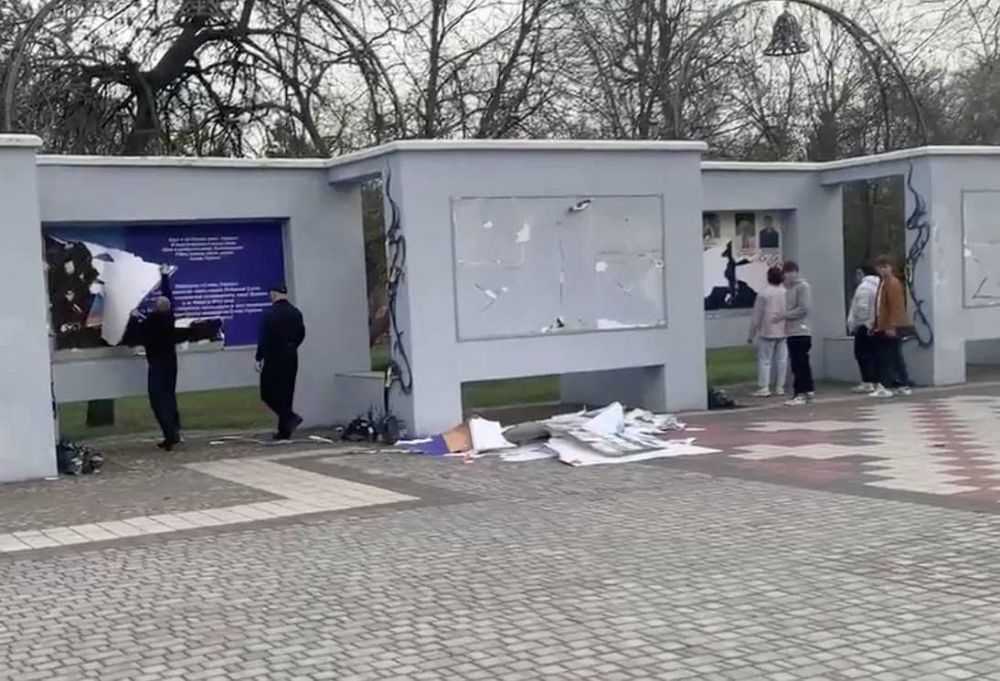 Рашисти зірвали портрети наших Героїв Небесної Сотні та загиблих учасників російсько-української війни. Знесли прапор. У місті російські загарбники також зняли борди з написами «Херсон — це Україна».