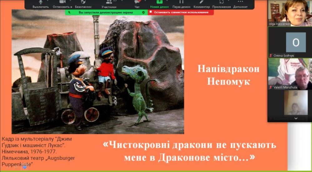Професорка Ольга Ніколенко розповіла про спадщину німецького письменника Міхаеля Енде і його твори для дітей і підлітків «Джим Ґудзик і машиніст Лукас», «Момо» та ін., в яких знайшли відбиток події Другої світової війни та актуальні проблеми сьогодення – боротьба із нацизмом, ксенофобією, расизмом тощо.
